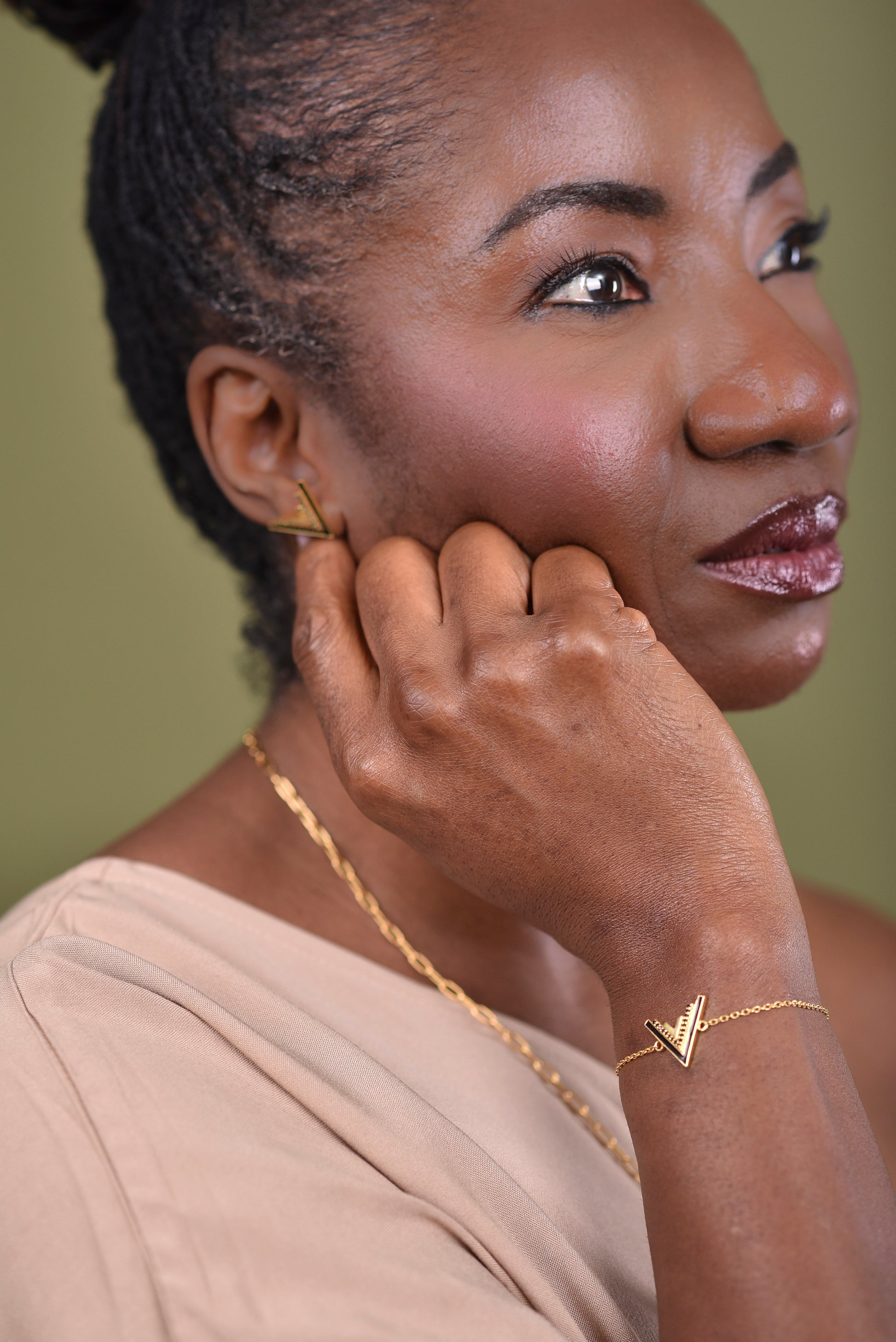 18k Gold Vermeil, Onyx & Black Enamel. Minimal yet magnetic, the Valor Bracelet brings the iconic V-shape of the Victorious Collection to your wrist. Featuring a central motif of black onyx set in gold, it’s a refined symbol of resilience and rooted power. Whether worn solo or stacked, this bracelet speaks to the quiet victories, the daily choices, the boundary-setting, and the self-love reclaimed. A wearable reminder that every step forward is a triumph.